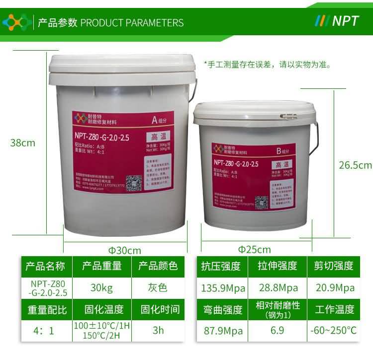 雙組分,以陶瓷顆粒及復(fù)合陶瓷顆粒、金屬碳化物為骨材與PDMG預(yù)聚體為基礎(chǔ)的耐磨復(fù)合材料,具有耐水、耐油、耐酸堿性。適用(-60℃-250℃)設(shè)備過流沖蝕、設(shè)備的大面積修復(fù)、設(shè)備預(yù)涂耐磨層,如旋流器、浮選柱、浮選機、泡沫槽、分級機、攪拌桶、溜槽、管件類、泵類等修復(fù)(典型用途見主要物理機械性能表)。