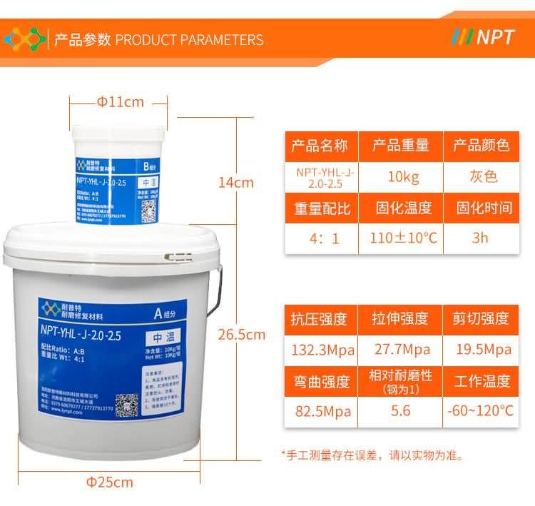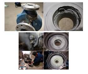 雙組分,以陶瓷顆粒及復合陶瓷顆粒、金屬碳化物為骨材與PDMG預聚體為基礎的耐磨復合材料,具有耐水、耐油、耐酸堿性。適用(-60℃-250℃)設備過流沖蝕、設備的大面積修復、設備預涂耐磨層,如旋流器、浮選柱、浮選機、泡沫槽、分級機、攪拌桶、溜槽、管件類、泵類等修復(典型用途見主要物理機械性能表)。