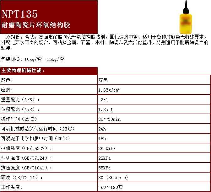 NPT135耐磨陶瓷片環氧結構膠