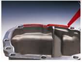 圖1: 渣漿泵泵腔在高速液體中的砂粒的沖刷作用下,磨損嚴重,圖為打磨泵體磨損面后,用NPT系列設備專用修復劑進行修復。