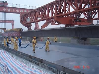 該工程分北京、廊坊、天津三段,六個(gè)梁場同時(shí)施工。全線做防水處理的面積超過