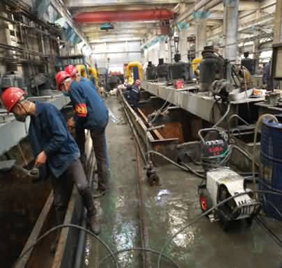 2. 物料、脫脂、除潮處理:用高壓清洗設備對浮選槽需修復部位進行清洗,去除設備表面的物料、鐵銹、污泥等雜質,并且應無油污、無粉塵。