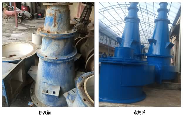 該材料能在流體環境中抗強腐蝕強氣蝕并有極好的抗沖擊性??砷L期抵御流體中夾帶固體(如砂石)的沖擊。適用(-20℃~250℃)設備過流沖蝕、設備的大面積修復、設備預涂耐磨層。