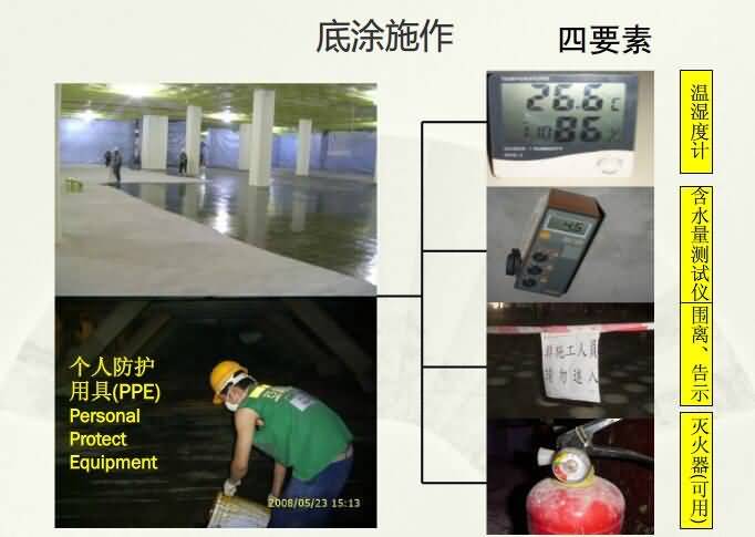 2、施工者應做好施工部位、時間、溫度、相對濕度、地坪表面處理、材料等實際記錄,以備查考。