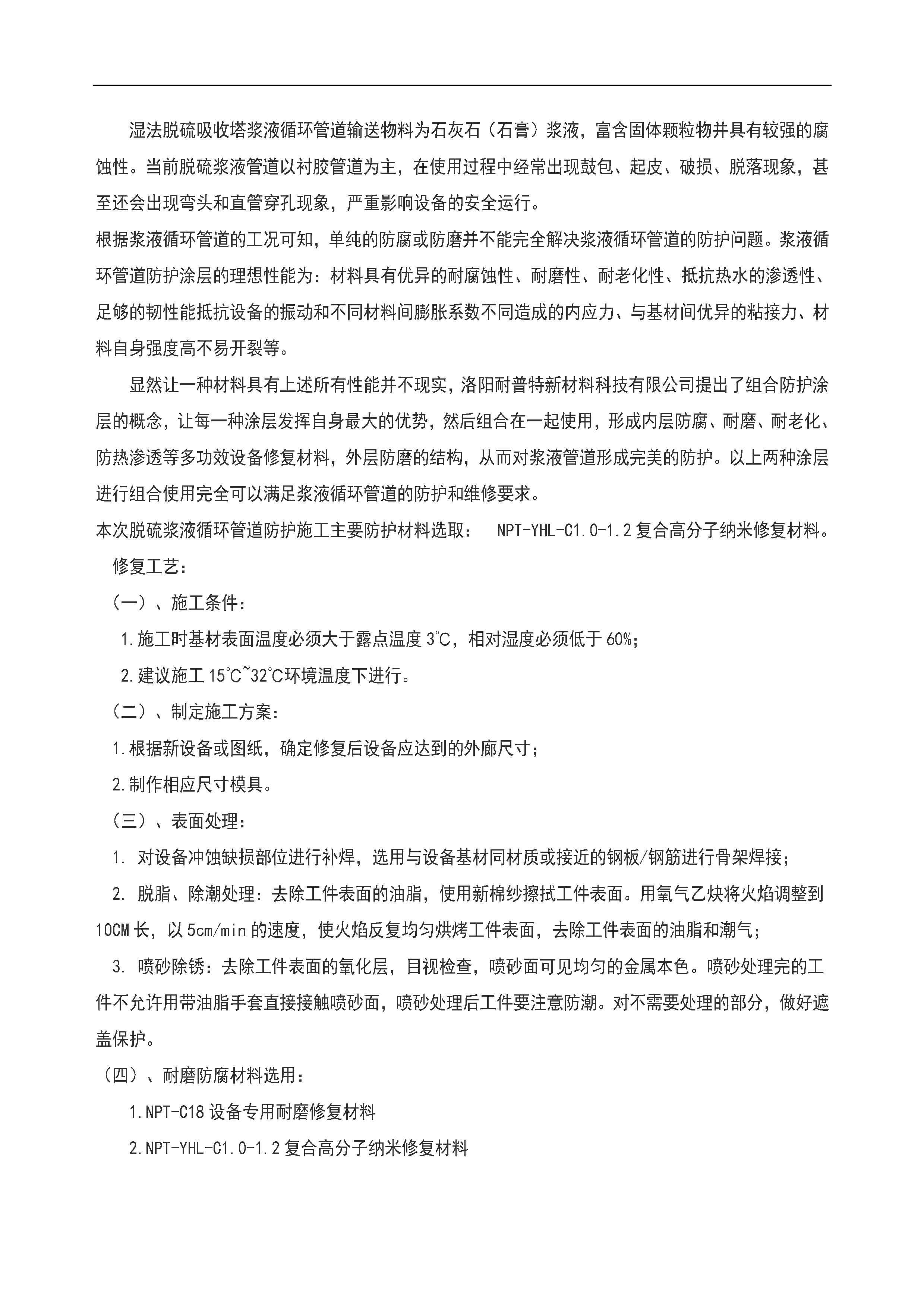 濕法脫硫漿液循環(huán)管道耐磨防腐組合防護(hù)涂層施工方案