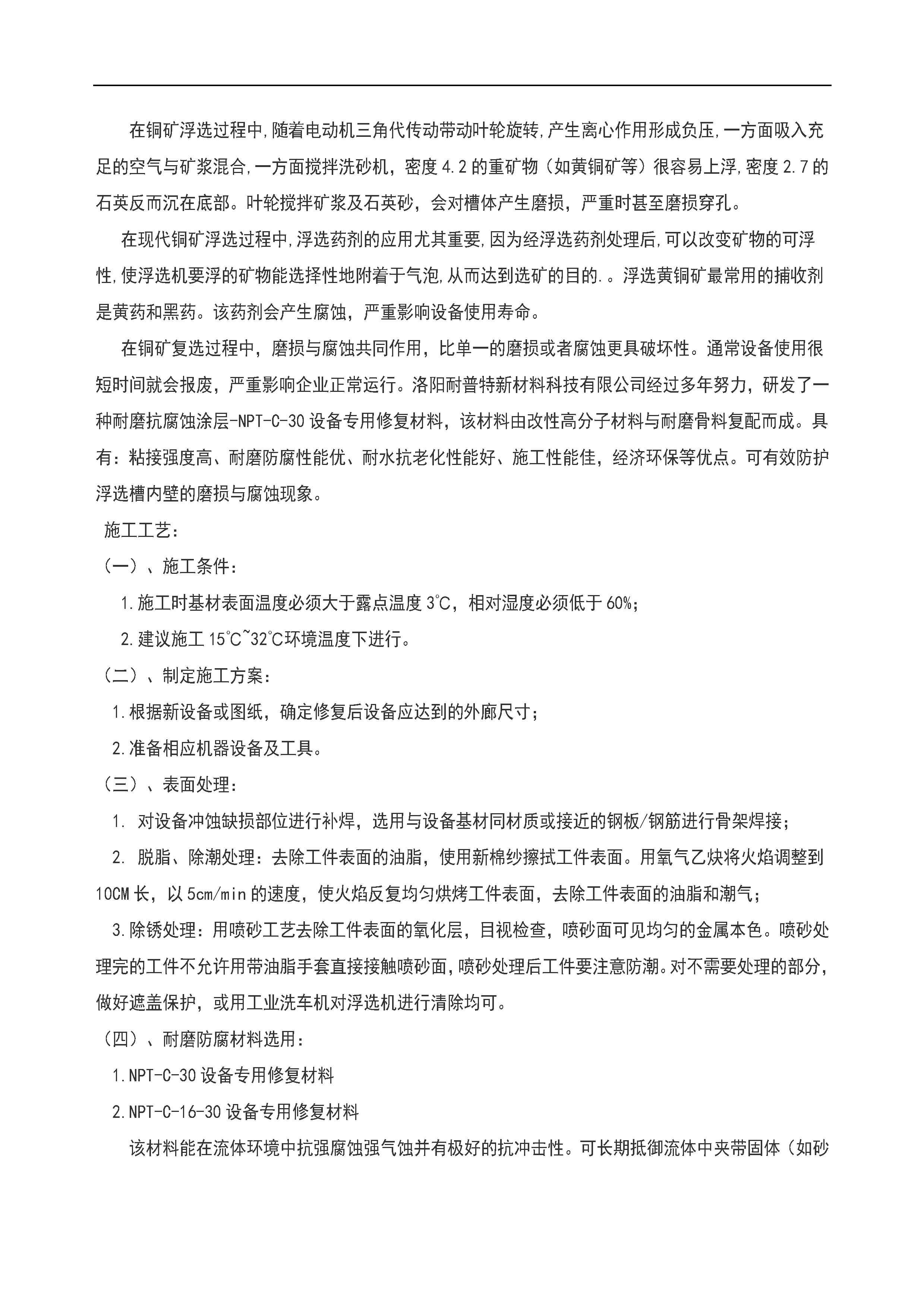 銅礦浮選槽耐磨防腐涂層施工方案