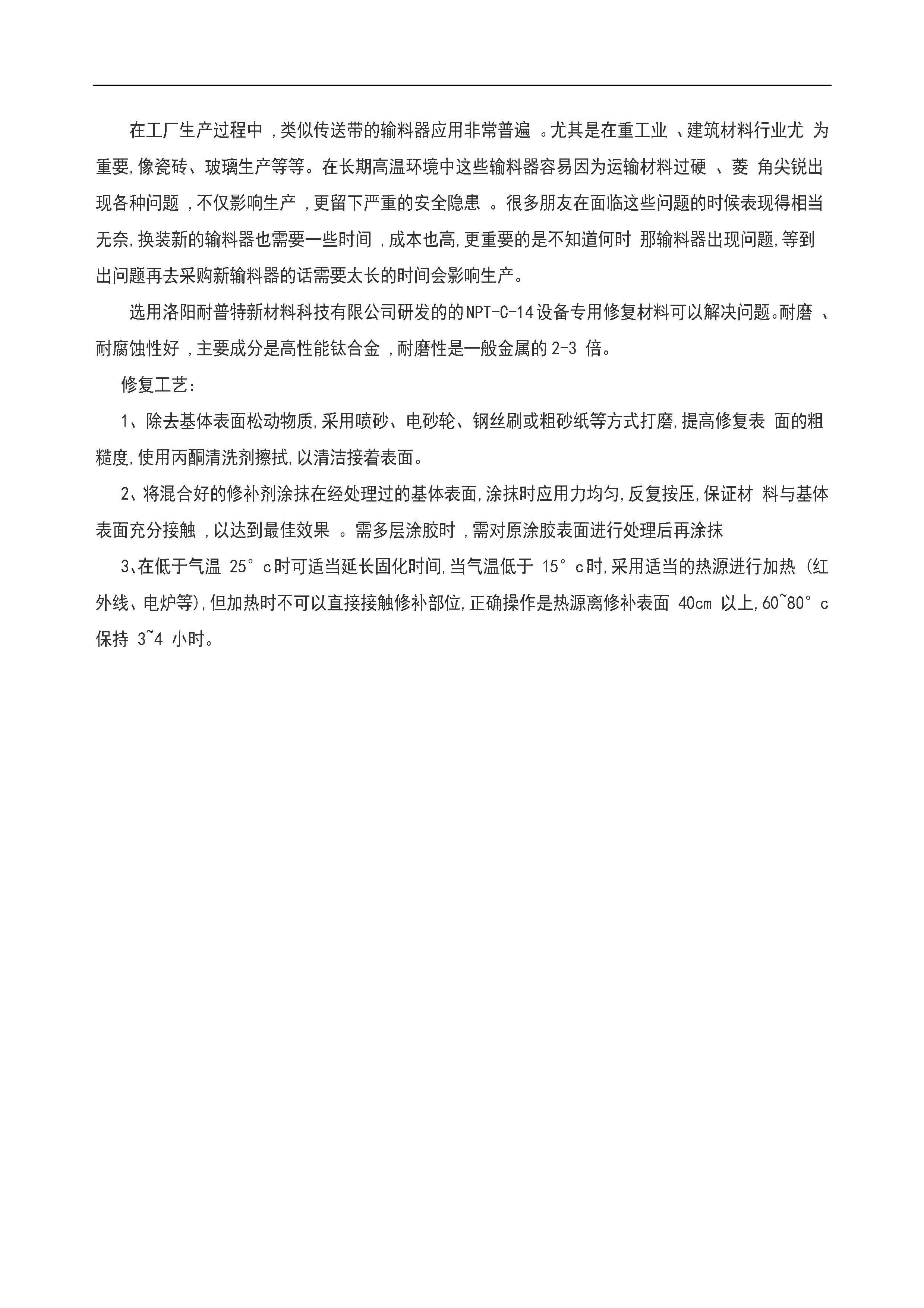 輸料器磨損修復