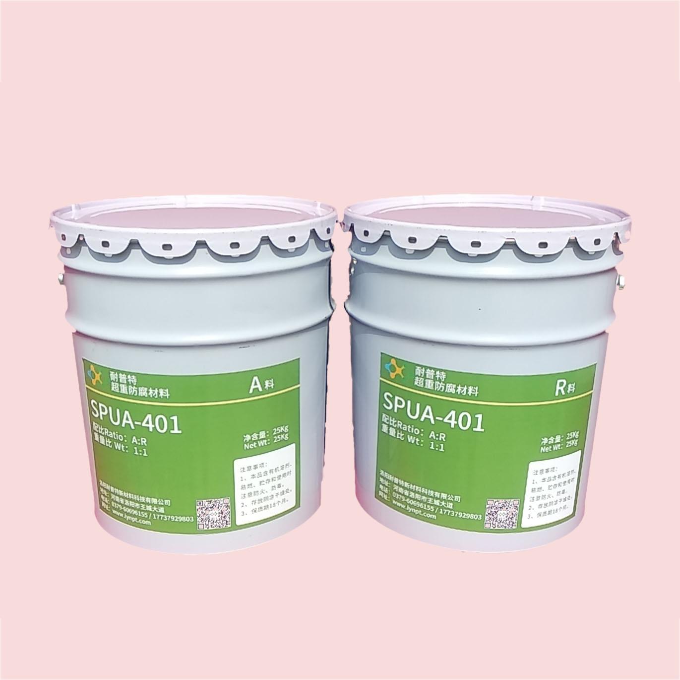 NPT-SPUA-401超重防腐材料是由半預聚體、端氨基聚醚、胺擴鏈劑等原料現場噴涂成型的第三代聚脲彈性體。該技術將新材料、新設備和新工藝有機地結合在一起,是傳統施工技術的一次革命性飛躍,是目前國際上先進的施工技術之一。